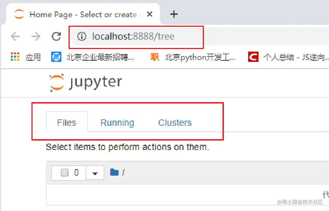 打开笔记本后,你会看到顶部有三个选项卡:Files、Running 和 Clusters。其中,Files 基本上就是列出所有文件,Running 是展示你当前打开的终端和笔记本,Clusters 是由 IPython 并行提供的。