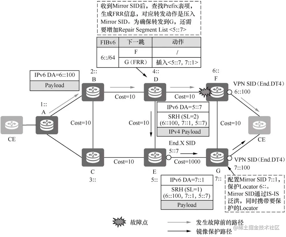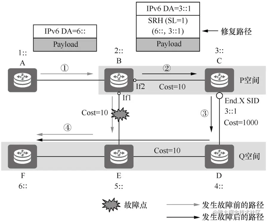 图6-7 SRv6 TI-LFA的工作原理