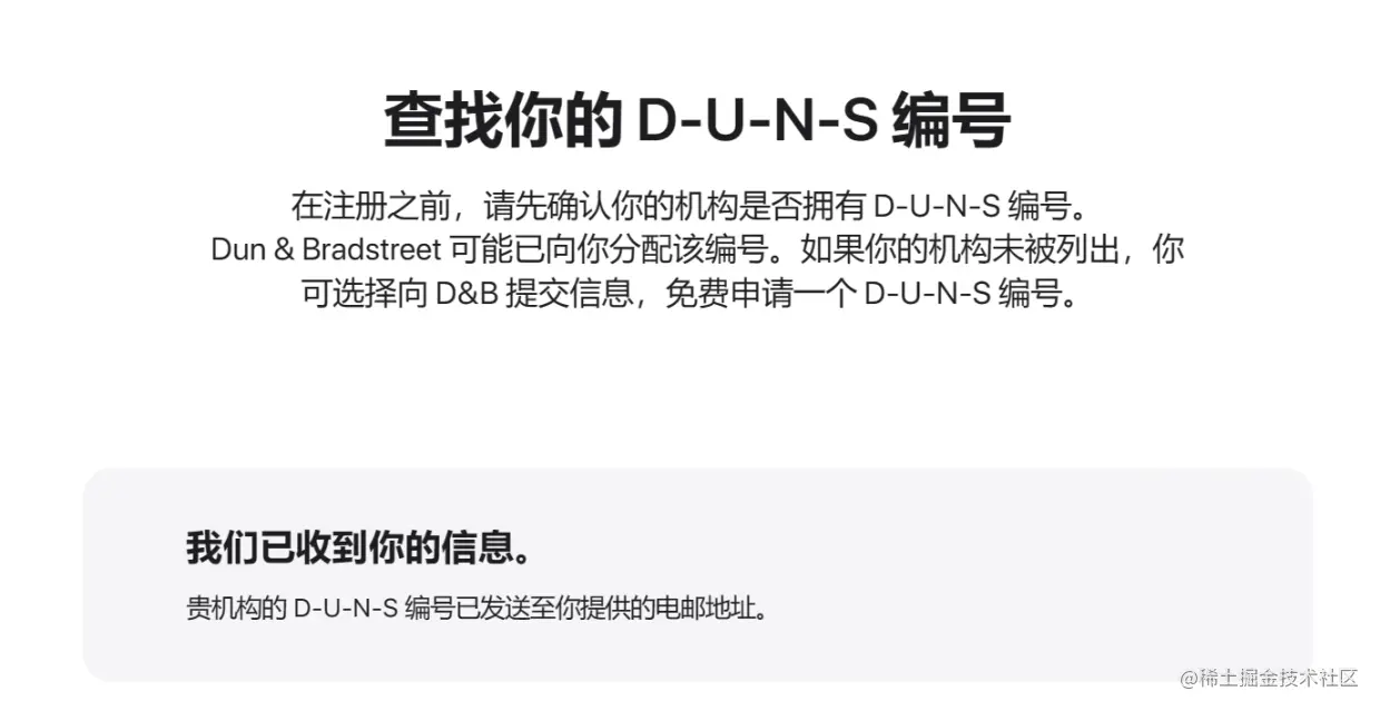 申请邓白氏码(网站申请) 星一一辰 2023-04-11 154 阅读1分钟 1.登录苹果账号 developer.apple.com 2.到达添写邓白氏码位置 3.选择查找组织 4.填写公司及联系信息(以英文格式),如果已经注册会显示邓白氏码,如果没有点击确认会以当前信息提交申请 5.提交完成,等待审核,一般一到两天会有回复信息,注意邮件提示,如果失败请尝试发邮件的形式