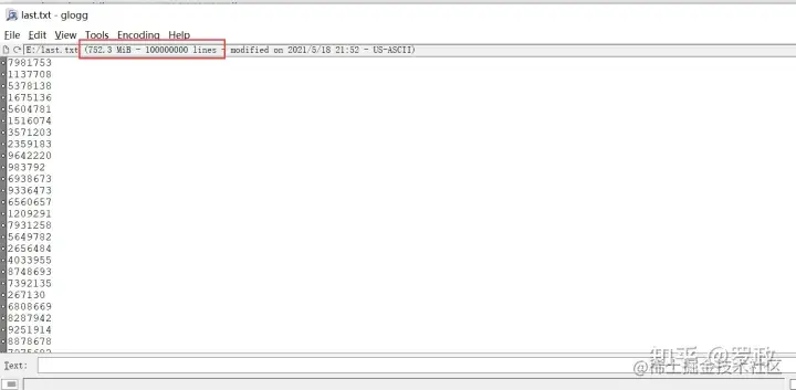这个是最终生成的文件,有770多MB 。下面用glogg打开预览: