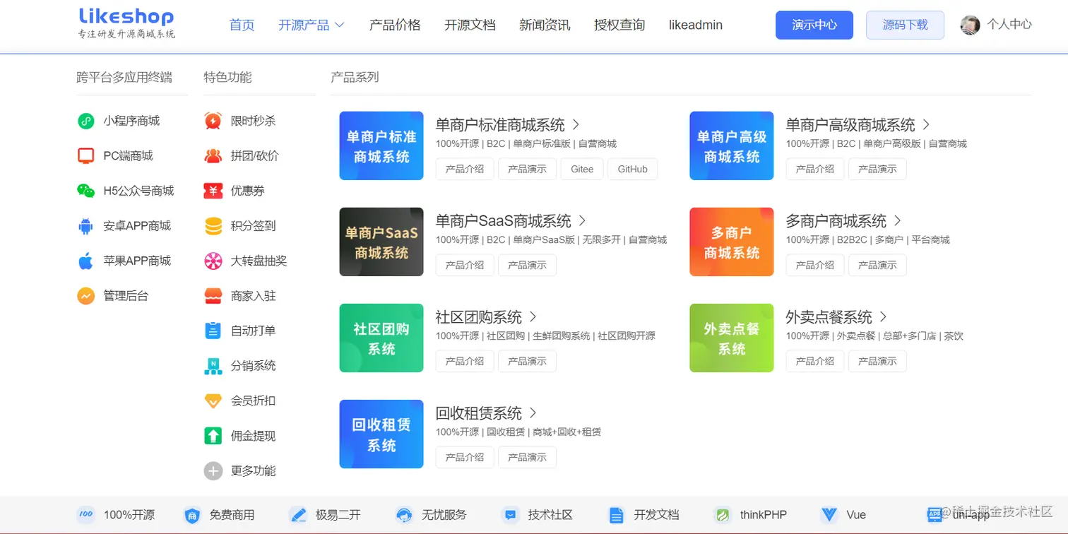 likeshop基于「ThinkPHP + Vue + Nuxt + uni-app」实现的免费开源商城系统,支持H5、小程序、APP,微信支付、支付宝支付、短信、云存储、优惠券、秒杀、拼团、抢购等主流功能,专业团队维护,值得信赖,欢迎到官网体验。