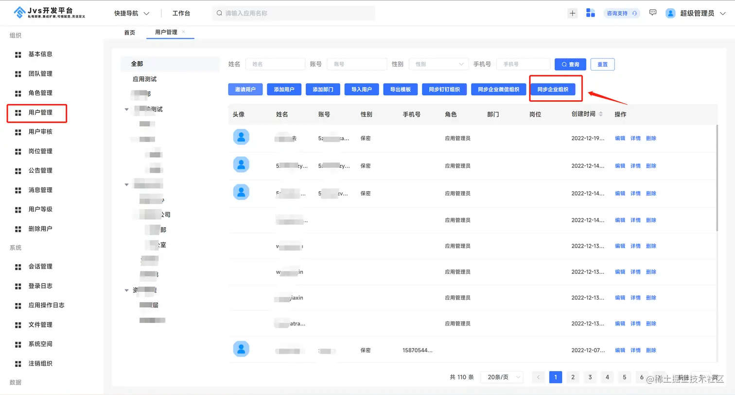 配置完毕后,点击同步企业组织,将用户及组织架构信息同步至系统中。