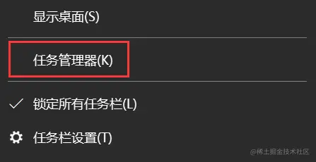 步骤1:右键点击任务栏上的空白区域,然后选择 【任务管理器】 ;
