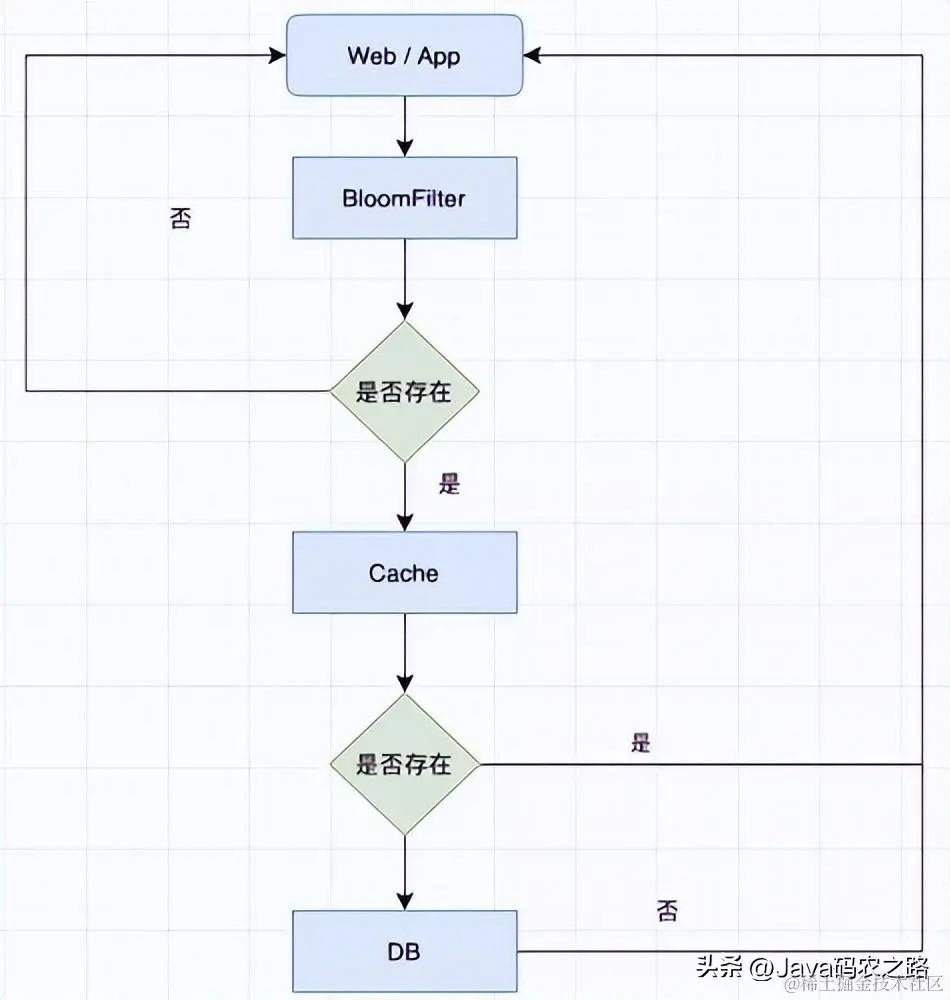 这种方案可以加在第一种方案中,在缓存之前在加一层 BloomFilter ,把存在的key记录在BloomFilter中,在查询的时候先去 BloomFilter 去查询 key 是否存在,如果不存在就直接返回,存在再走查缓存 ,投入数据库去查询,这样减轻了数据库的压力。