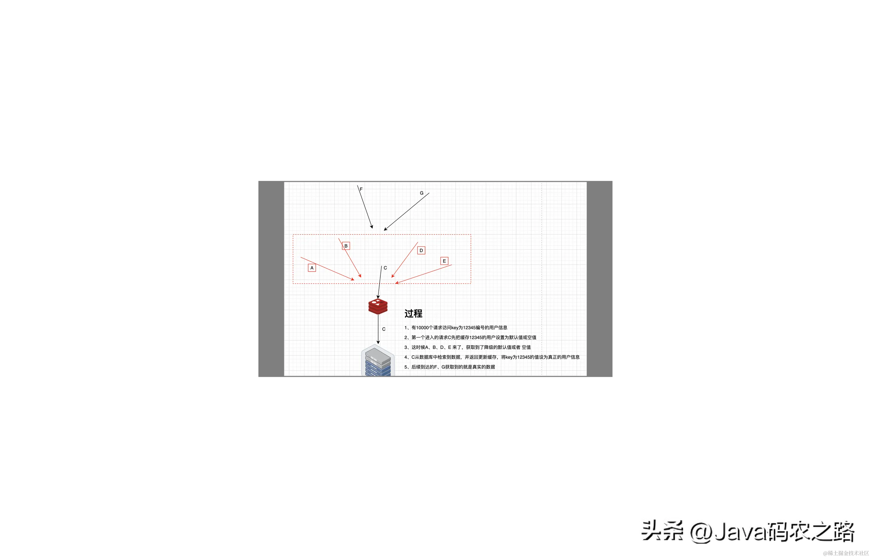 如果一个缓存失效的时候,有无数个请求狂奔而来,而第一个请求从进入缓存池,判空,再到数据库检索,再查询出结果并返回设置缓存的这个过程里,缓存是不存在的。