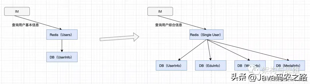 所以开发同学做了下优化,每次只取单个用户的综合信息存在Redis中,一个用户建一个缓存,如上图右侧所示。