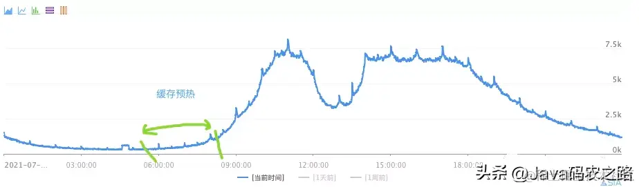 所以如果10点是峰值期,那么可以预先在8~10点期间,可以逐渐的把大部分缓存建立起来。如图: