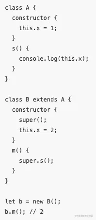 - 在普通方法中,指向父类的原型对象;在静态方法中,指向父类。