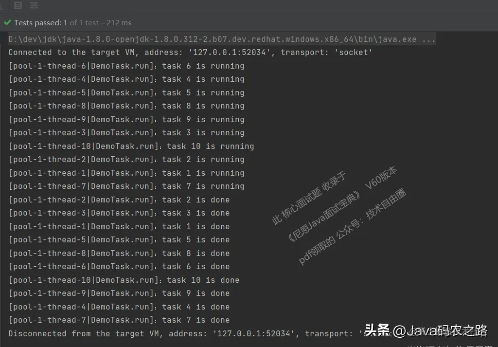 来看一个例子:向3个线程的固定大小线程池, 提交10个任务,每个任务 500ms!