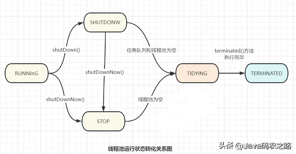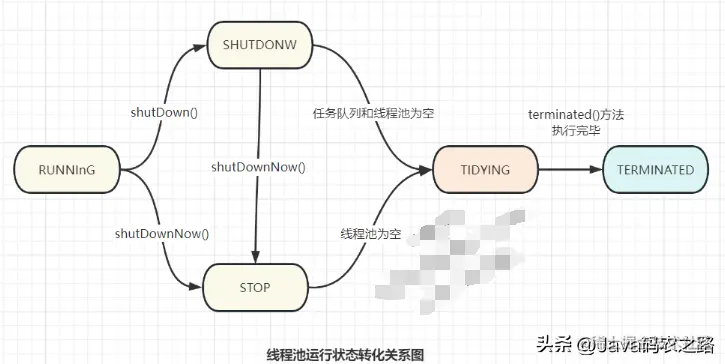 线程池关闭过程中,会涉及到 频繁的 runState 运行状态转化,