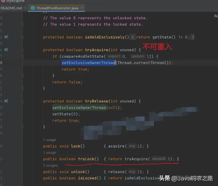 线程池的主锁是 mainLock ,是可重入锁,