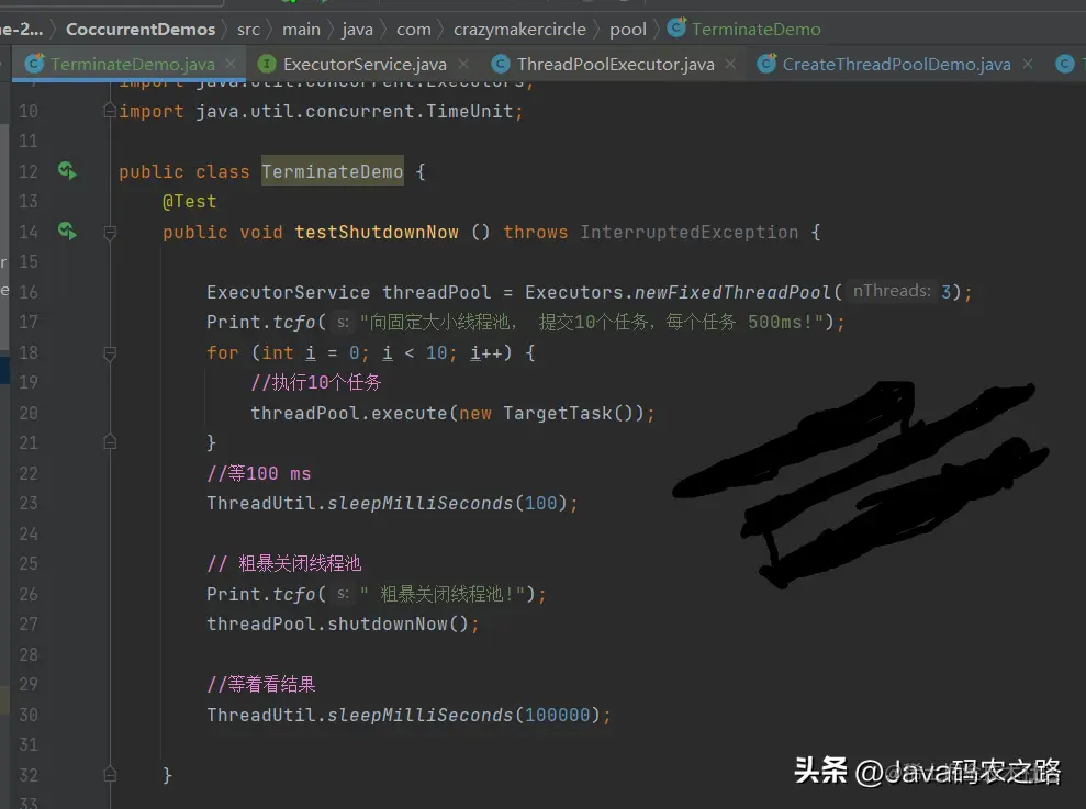 (2)shutdownNow方法:暴力关闭线程池