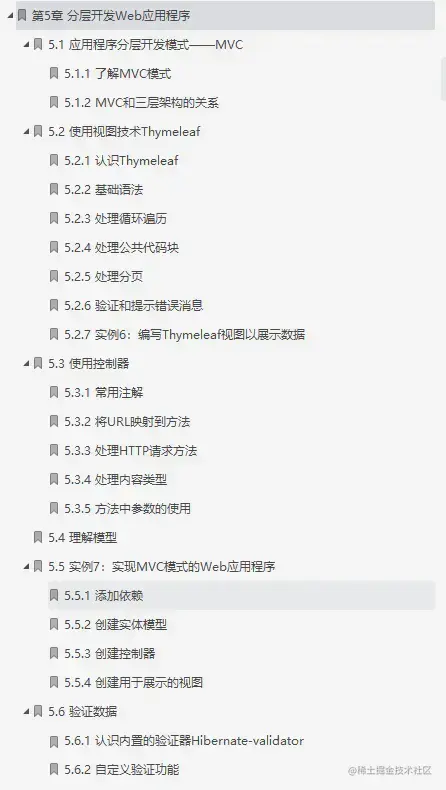 介绍Web开发中最常用的分层开发的模式MVC ( Model View Controller );然后讲解视图技术Thymeleaf的语法和实用技术,并用实例讲解如何将MVC三者联系起来构建Web应用程序;最后通过实例讲解如何用Validator实现数据验证,以及如何自定义数据验证。