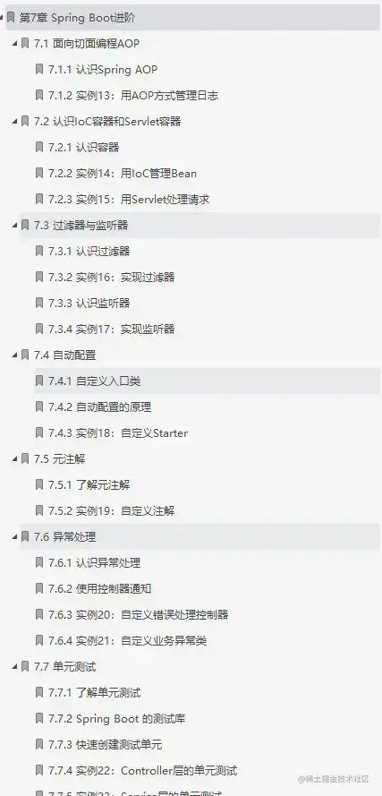 介绍AOP、loC、Servlet 容器;然后深入讲解自动配置原理、自定义Starter、自定义注解;最后讲解异常的处理,以及如何进行单元测试。