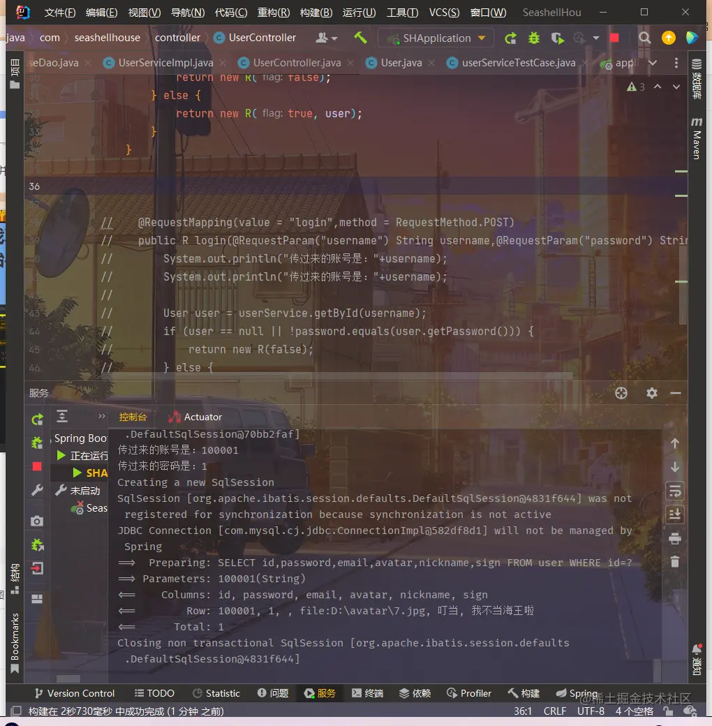 后端的UserController