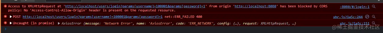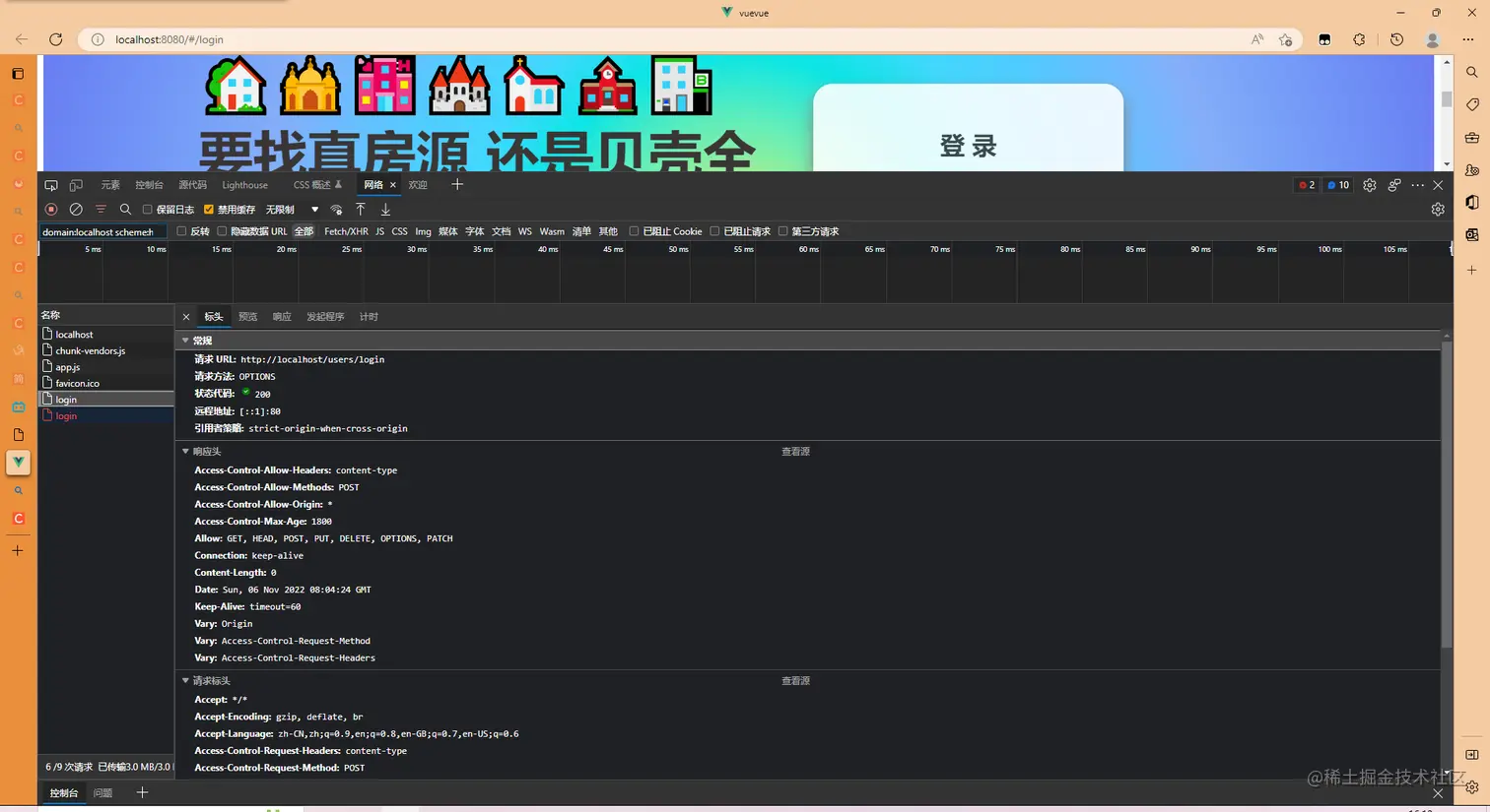 前端页面的两个login方法,一个请求类型是options,一个请求是我们写的post类型。