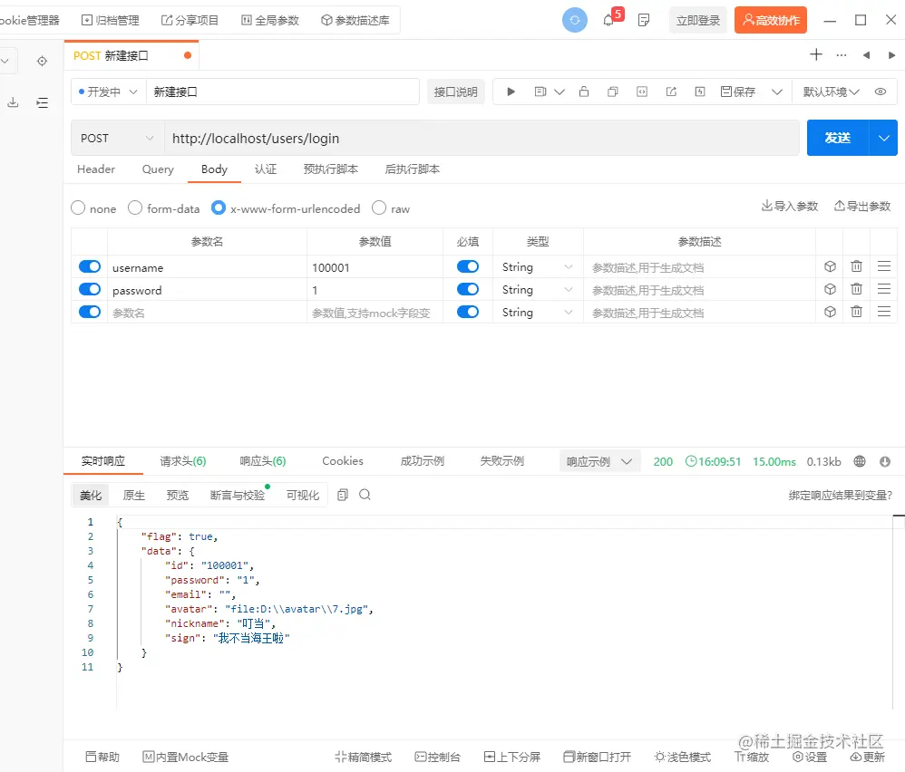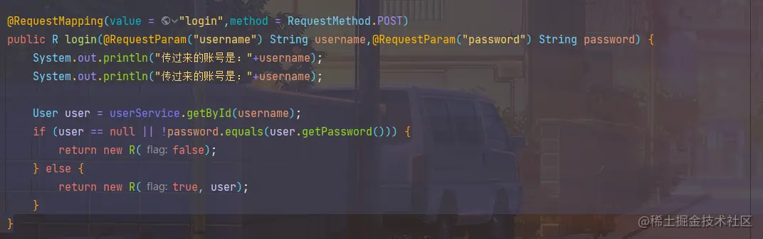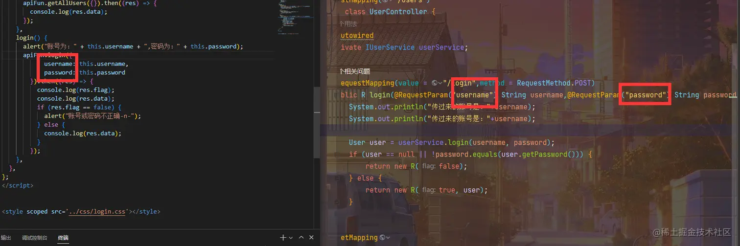 但是没注意到是params没对应上。还去确认了两边的username和password单词有没有写错