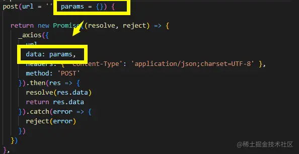 封装好请求方法后,传输参数时,直接写键值对,无需手动转为json数据,且不要用params({ })包裹起来。