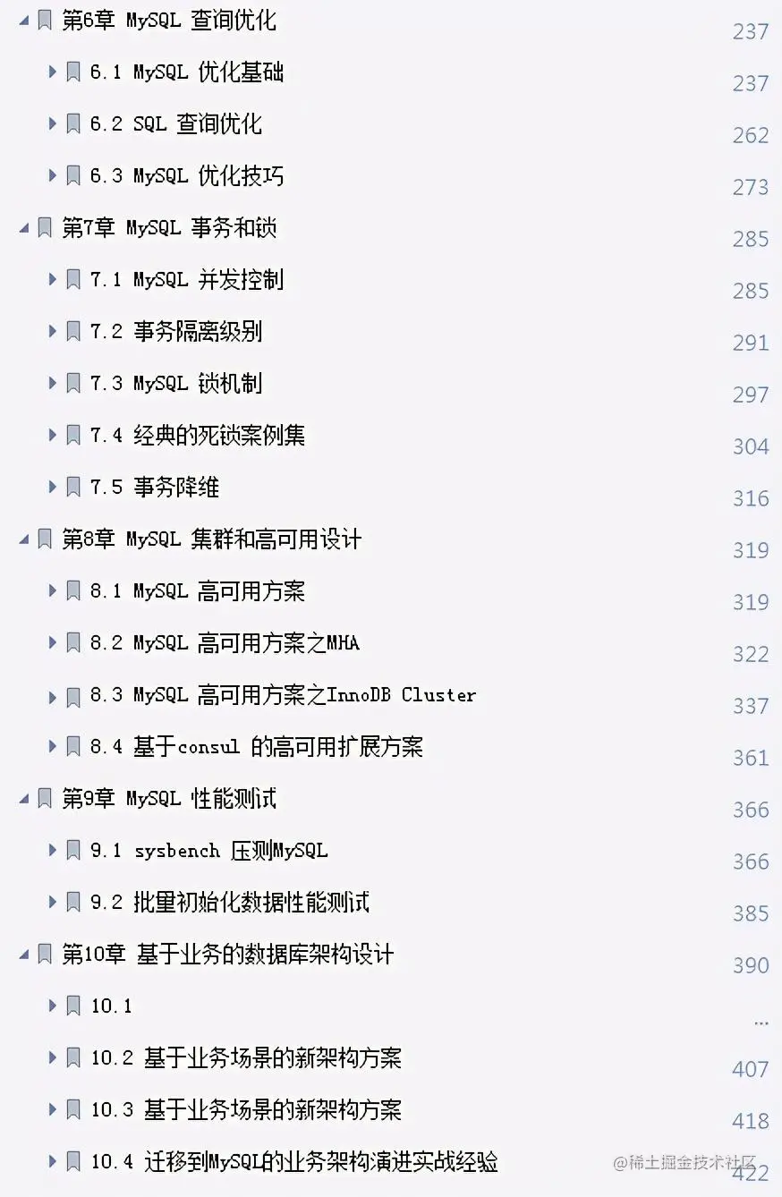 包含SQL查询优化,并发控制内容和性能测试的一些相关内容,在这个基础上补充了MySQL高可用架构和集群相关内容,提供基于业务的架构设计思路。