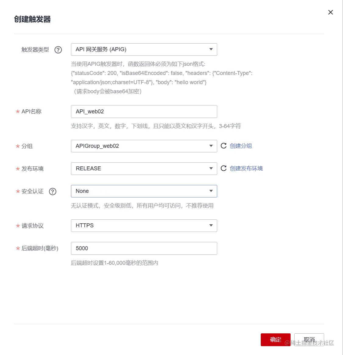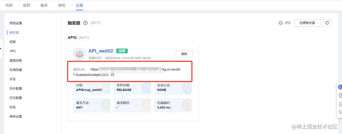 - 触发器类型:API网关服务(APIG)