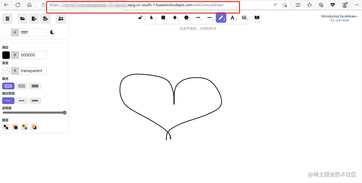 访问链接:APIG调用URL+/web2/excalidraw/,即可访问应用。