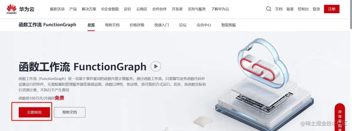 点击“立即使用”按钮,进入FunctionGraph首页。