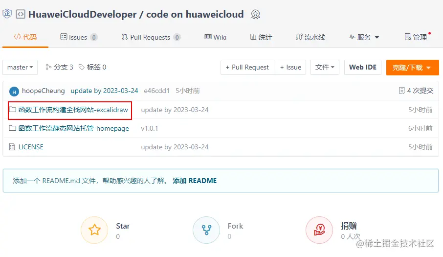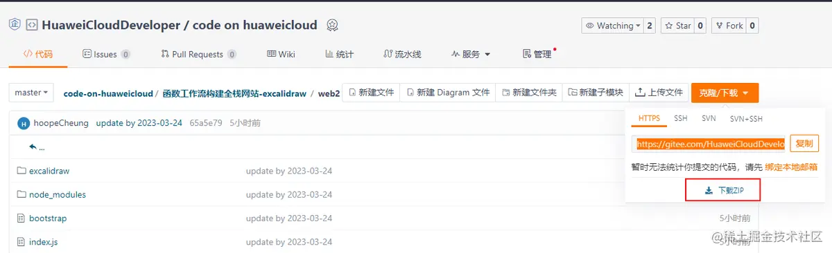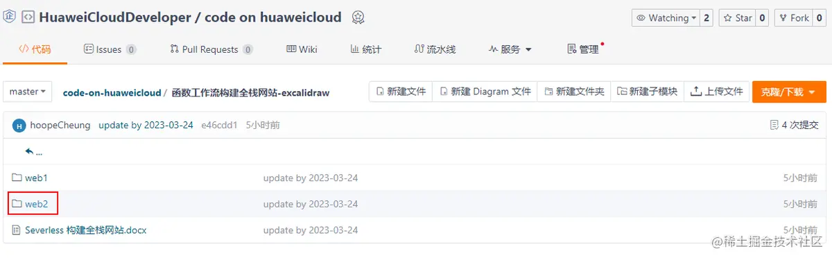 前往代码仓,选择“函数工作流构建全栈网站”文件夹,下载web2.zip文件