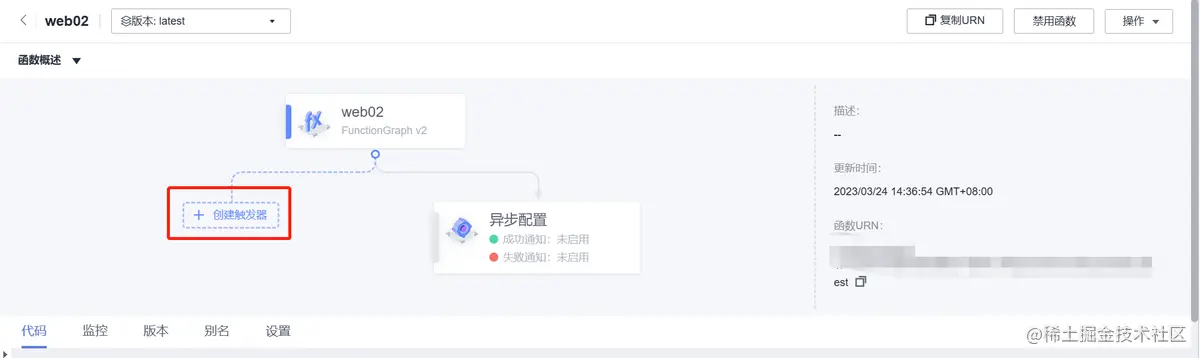 在函数概述页点击“创建触发器”