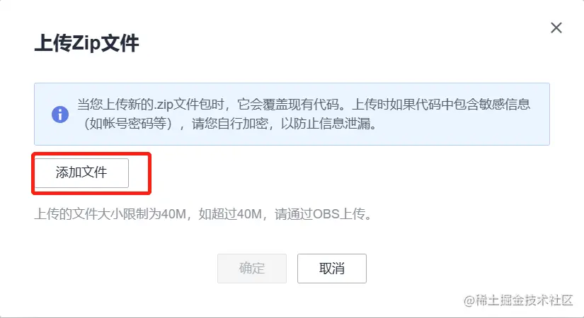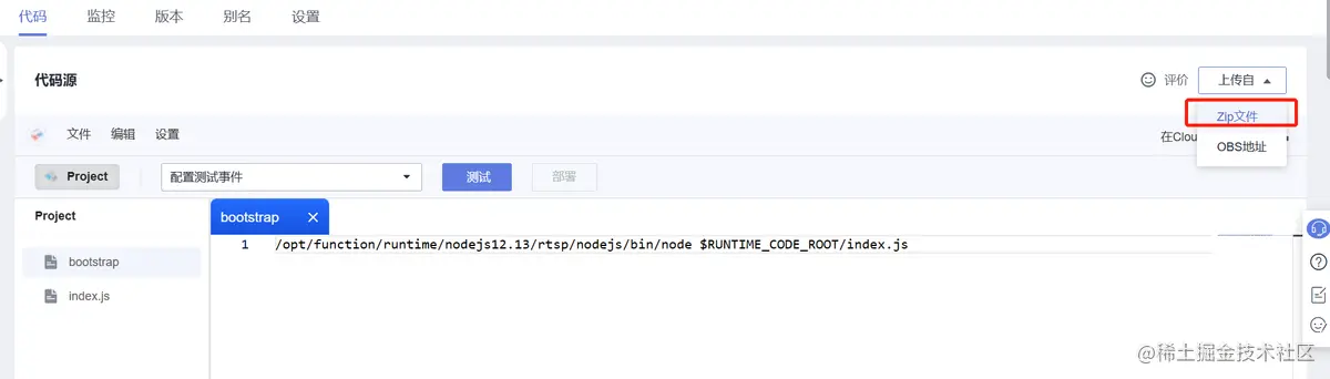 前往FunctionGraph函数页面,依次点击“代码”-“上传至”-“Zip文件”,上传从代码仓下载的“web2”文件包