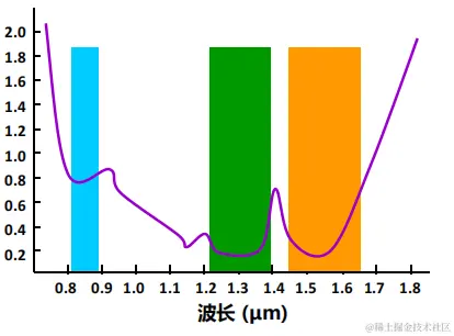 采用波分复用 WDM,上行和下行分别使用不同的波长。