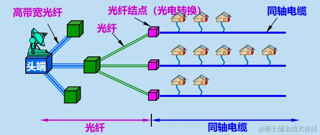 HFC (Hybrid Fiber Coax) 网基于有线电视网 CATV 网。