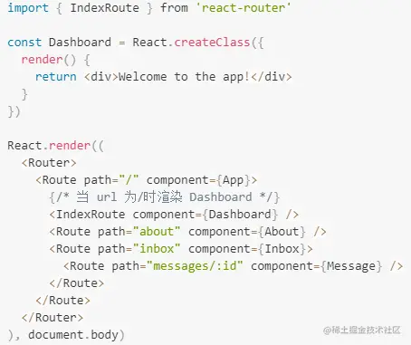 使用IndexRoute设置默认页面(此时App的render中的this.props.children为元素)