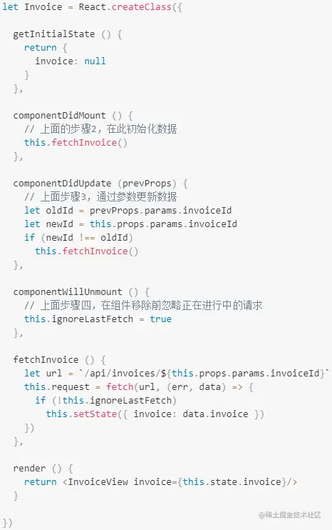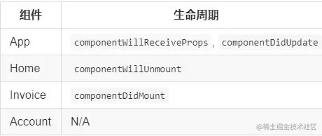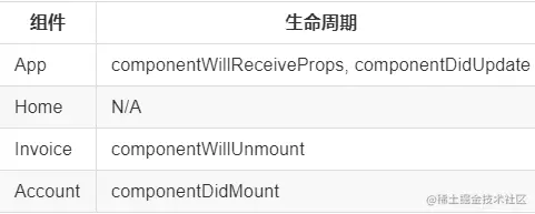 - 当用户从 '/' 跳转到 '/invoice/123'时,组件生命周期的状态: