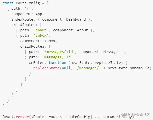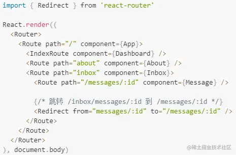 - 再使用重定向写法将"/inbox/messages/:id"地址都匹配跳转到"/messages/:id"