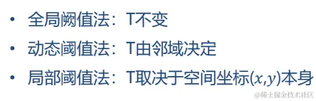 • 根据获取最优分割阈值的途径可以把阈值法分为