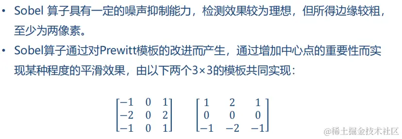 Sobel 算子具有一定的噪声抑制能力,检测效果较为理想,但所得边缘较粗,至少为两像素。