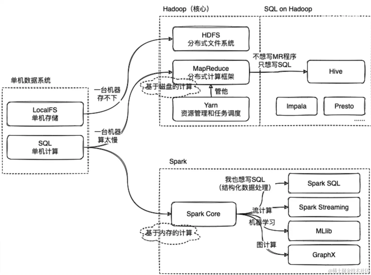 以上就是Hadoop中的MapReduce与Spark 的区别,以及他们实现为了实现结构化数据处理进行的SQL实现。
