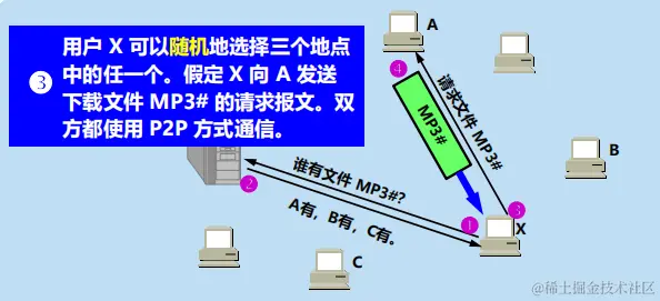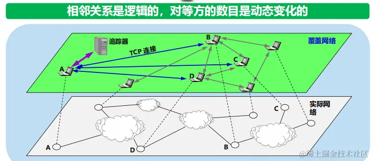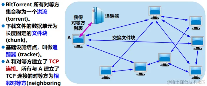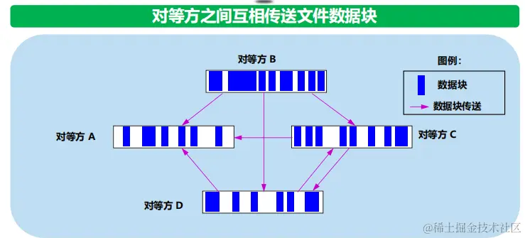 方法:A 使用最稀有的优先 (rarest first) 的技术,首先向其相邻对等方请求对应的文件块。