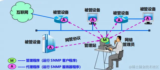 管理程序使用 MIB 中这些信息的值对网络进行管理(如读取或重新设置这些值)。