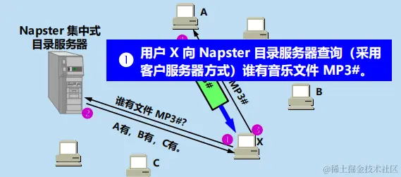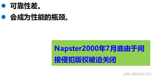 Napster 的文件传输是分散的,文件的定位则是集中的。