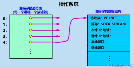 操作系统为这些资源的总和用一个套接字描述符的号码来表示。