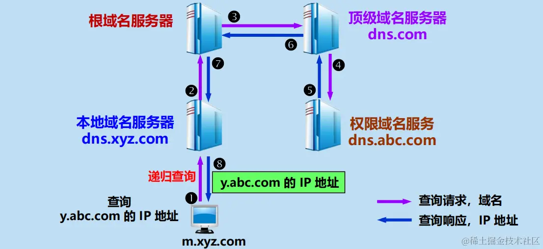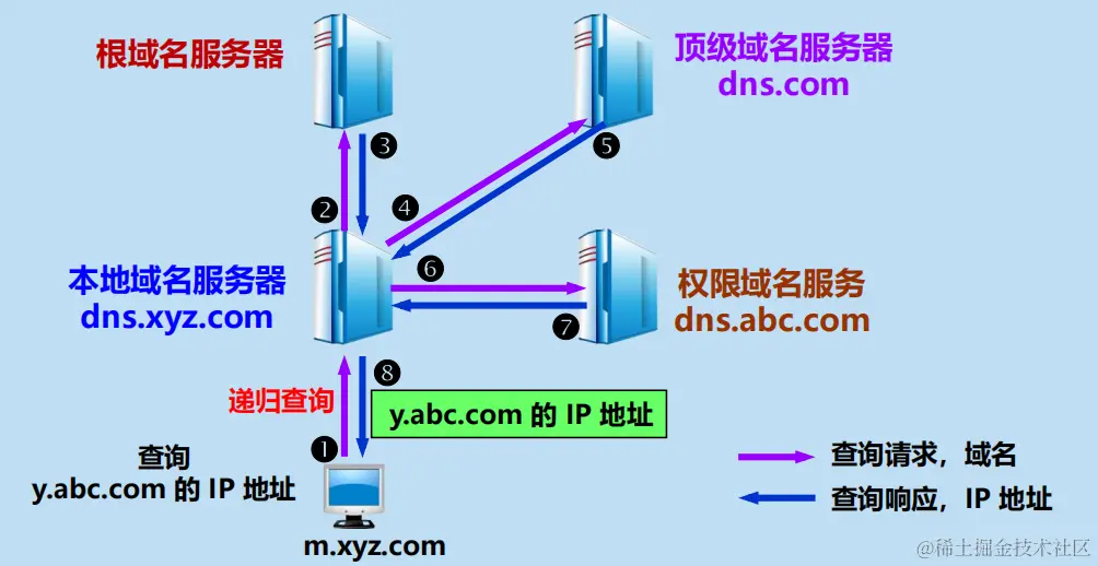当一个权限域名服务器还不能给出最后的查询回答时,就会告诉发出查询请求的 DNS 客户,下一步应当找哪一个权限域名服务器。