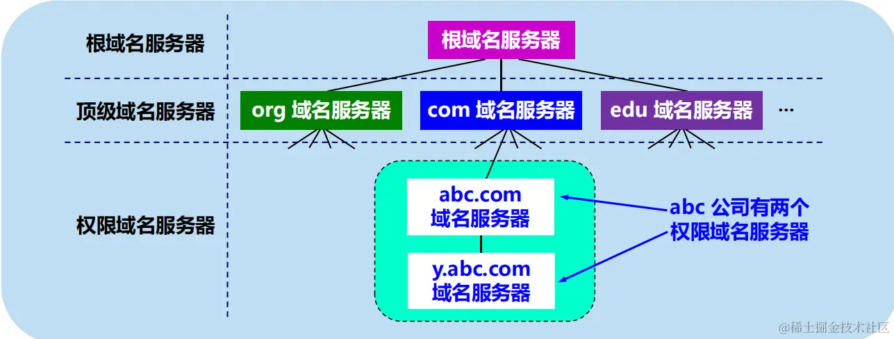 每一个区设置相应的权限域名服务器,用来保存该区中的所有主机的域名到 IP 地址的映射
