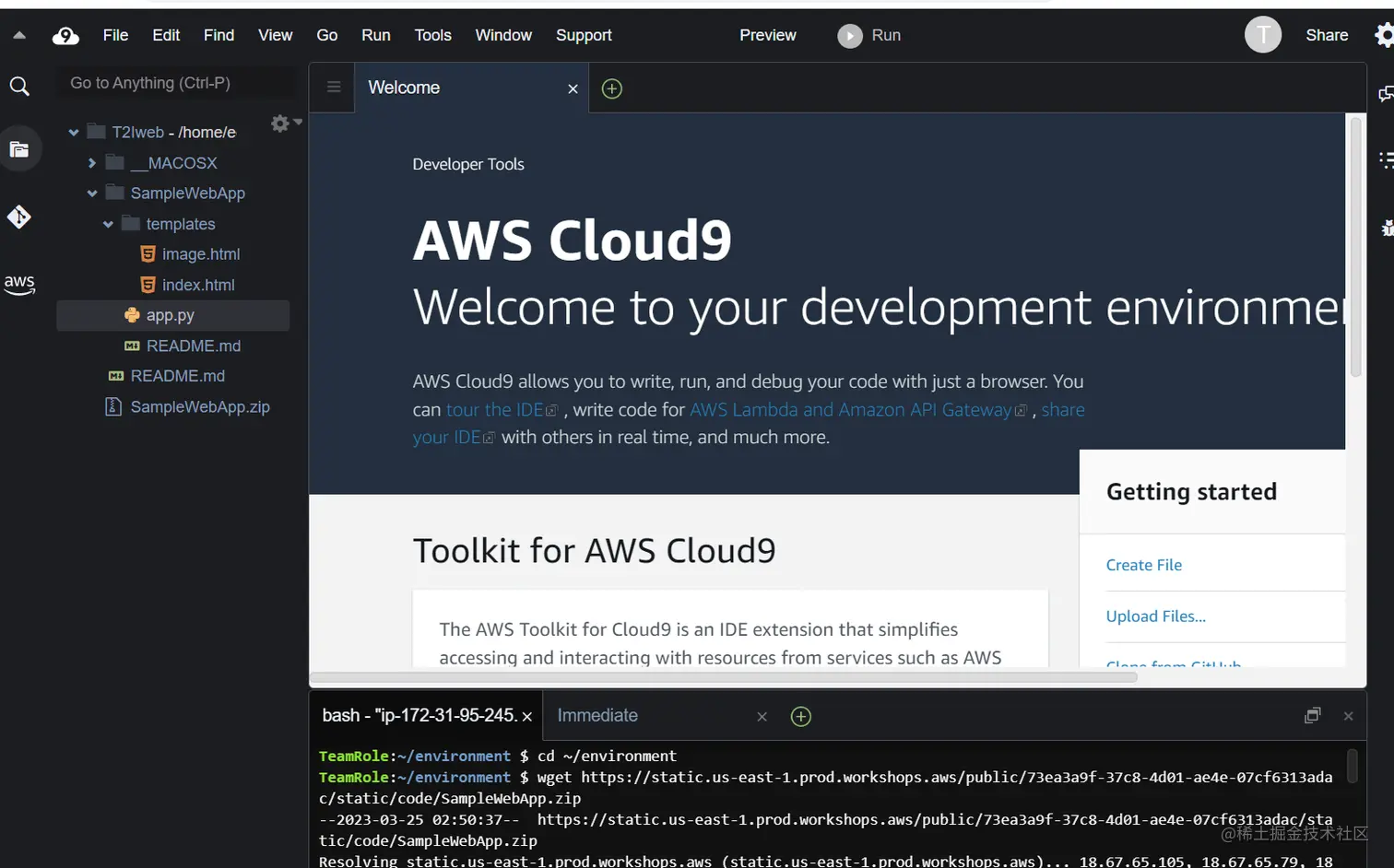 wget https://static.us-east-1.prod.workshops.aws/public/73ea3a9f-37c8-4d01-ae4e-07cf6313adac/static/code/SampleWebApp.zip