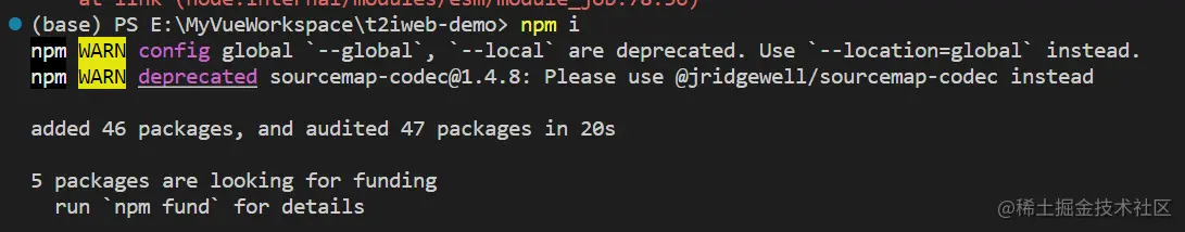 初始化好后,输入npm i安装相应依赖,然后输入npm install element-plus --save和npm install axios安装element-plus、axios依赖