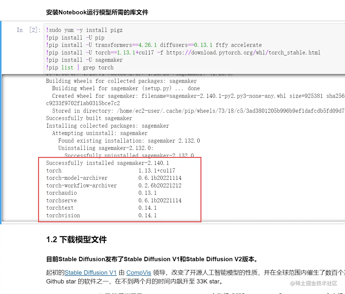 由于这个Diffusion Model的Amazon SageMaker Jupyter文件已经为我们写好了所有配置步骤,环境安装,我们直接点击Run