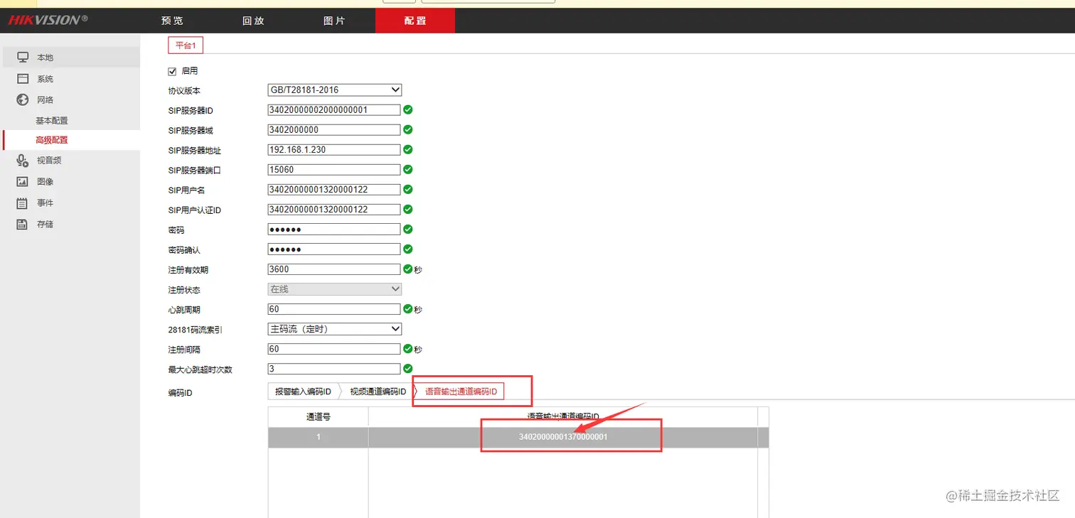 - 看到语音输出通道编码,表示支持语音对讲功能。