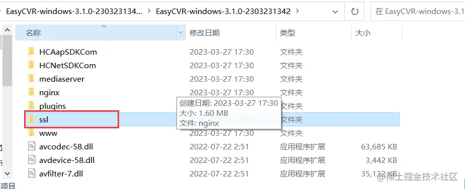1)首先,将域名的证书和密钥文件上传至EasyCVR服务端——SSL目录下;