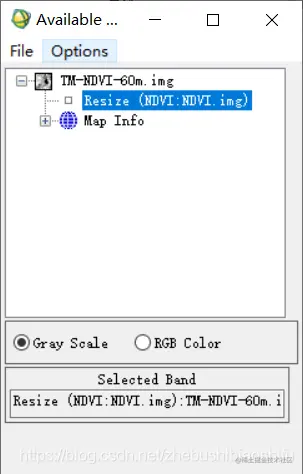 再次,需要视实际情况对计算得出的NDVI结果图像进行重采样。这是由于,在本文中需要多次利用“Band Math”工具对图像数据进行计算,而这一工具要求输入的数据在图像分辨率(即像元大小)及行、列数等方面完全一致。同时,我们即将使用的热红外数据(即Landsat ETM+第六波段数据),其分辨率为60米;而计算得到的NDVI数据图像分辨率为30米。因此,我们需要对分辨率精度更高的NDVI数据图像加以重采样处理,使得二者分辨率一致。