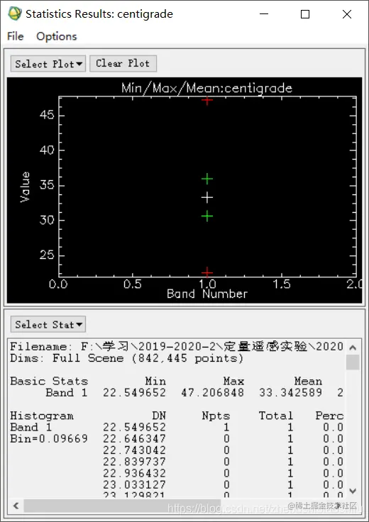 (5) 可以看到,其中像元像素值(即“Data”值)出现了“302.902771”这一数值。而这一步骤所得到的结果为单位为摄氏度的地表实际温度数值,不可能出现三百多的数据。因此,说明很可能在前面操作部分出现错误。